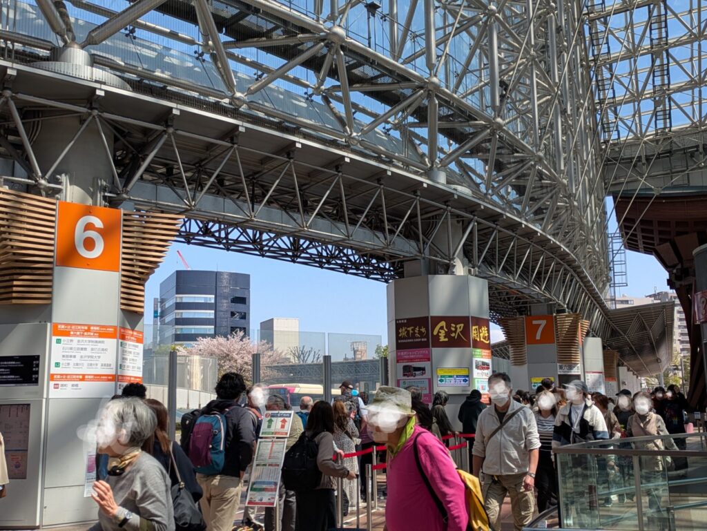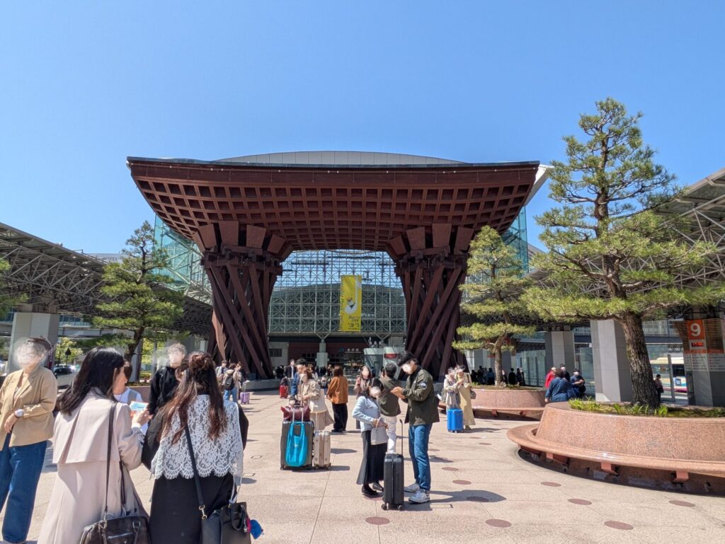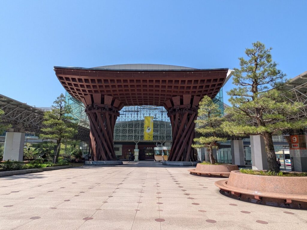 ☝️駅の東広場にそびえ立つ、金沢のシンボル鼓門(つづみもん)です。