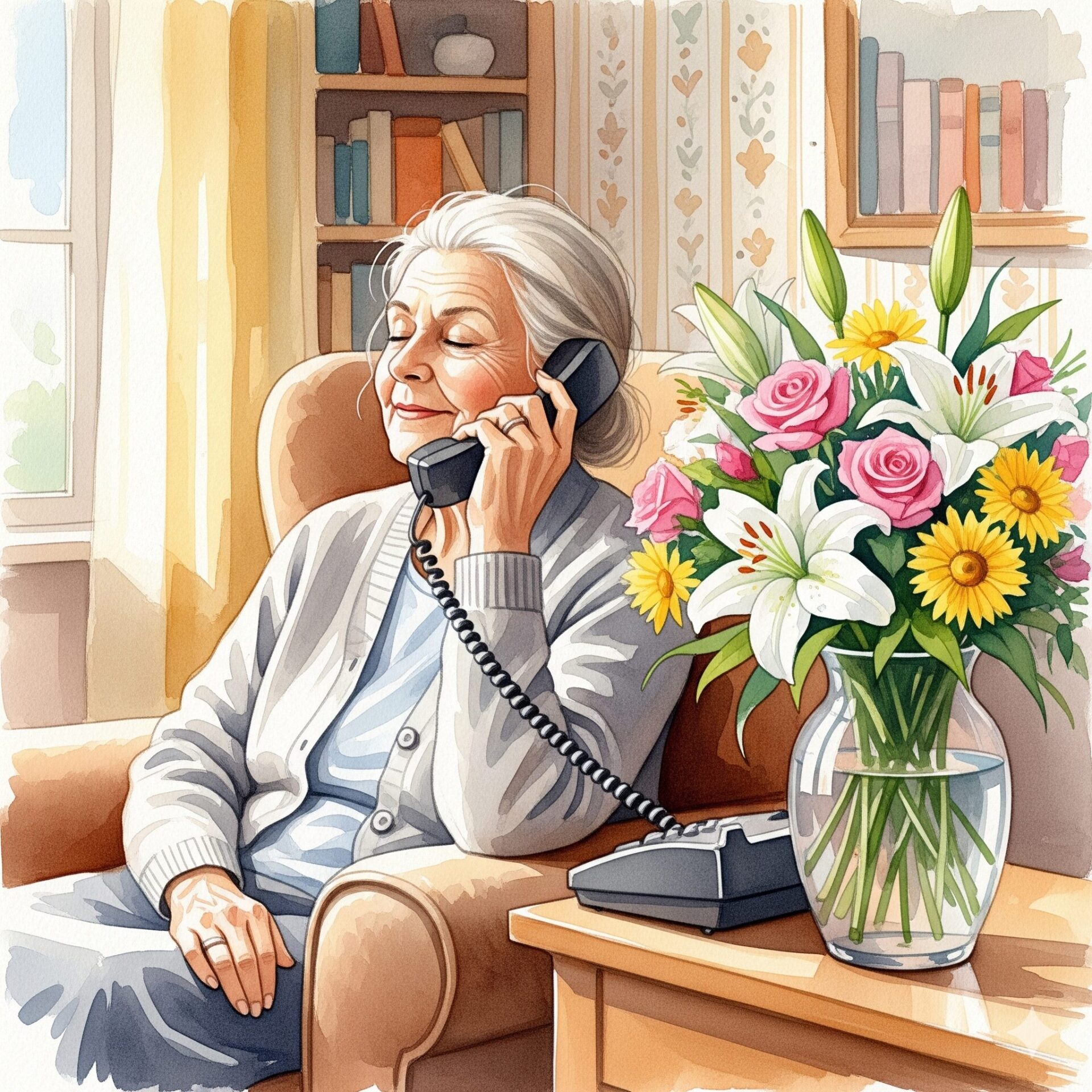 来週、お花が届いた頃にまた電話する約束をしました(目がほとんど見えないので叔母からは私にかけられないのです)。